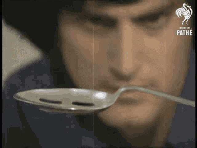 Uri Geller, celebrity psychic, displaying a spoon he claims to have bent with his mind. Notice the film does not show the spoon bending. Gif uploaded by MindBob on Tenor.