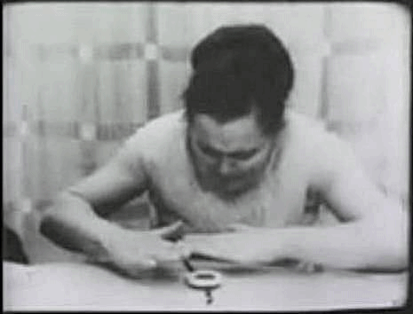 Ninel Kulagina, moving a compass in what is certainly a Soviet propaganda film probably faked using magnets under the table.
